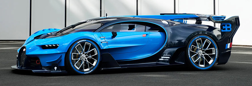 The Bugatti Vision Gran Turismo is a single-seater concept car developed by Bugatti and was manufactured in Molsheim, Alsace, France. The car was unveiled at the 2015 Frankfurt Motor Show, a month after its teaser trailer was released. Built under the Vision Gran Turismo programme, the car's design is a precursor to the Bugatti Chiron, and also pays homage to the 1937 Le Mans-winning Bugatti Type 57G Tank racer, in which its livery is also based upon. Only one Vision Gran Turismo exists. It has been bought twice, initially by Saudi Arabian businessman Badr bin Farhan Al Saud, and later by a car collector from Los Angeles, California. |